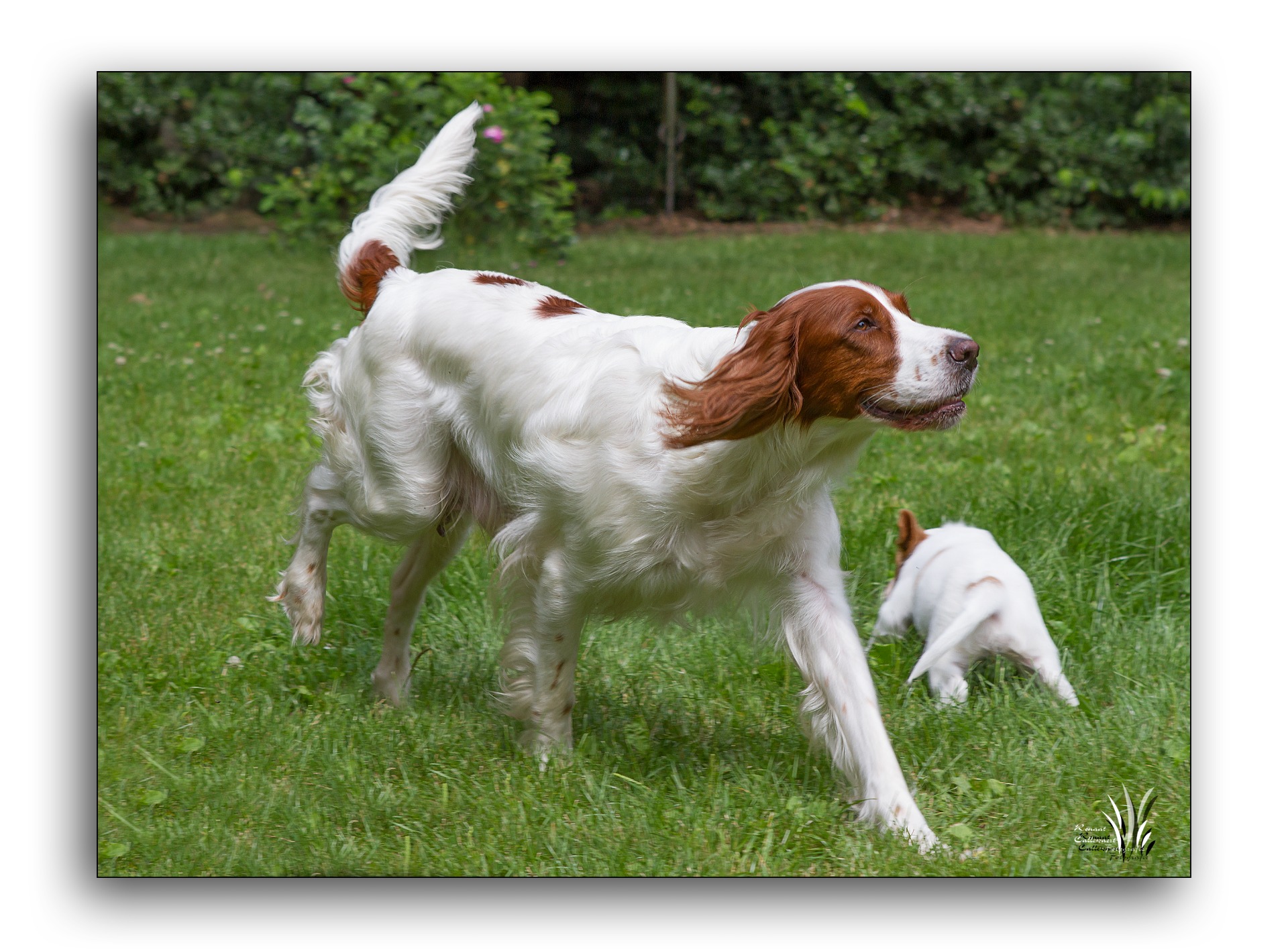 In een jachthond moet nog jachtinstinct inzitten en dat is bij onze rood-witte ierse setters nog volop aanwezig. Zelf beoefenen we veldwerk en praktische jacht .